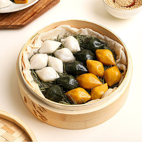 - 소 넣고 반달 모양 빚은 뒤 솔잎 깔아 찌기